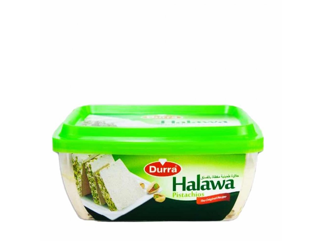 Ingredients: sesame paste (52%), Sugar (28.87%), glucose (14.43%), pistachios (1%), soapwort (1%), acidification agents: E330 (0.15%), Vanilla: (0.05%), emulsifer: E471 (2%) - E322 (0.5%).