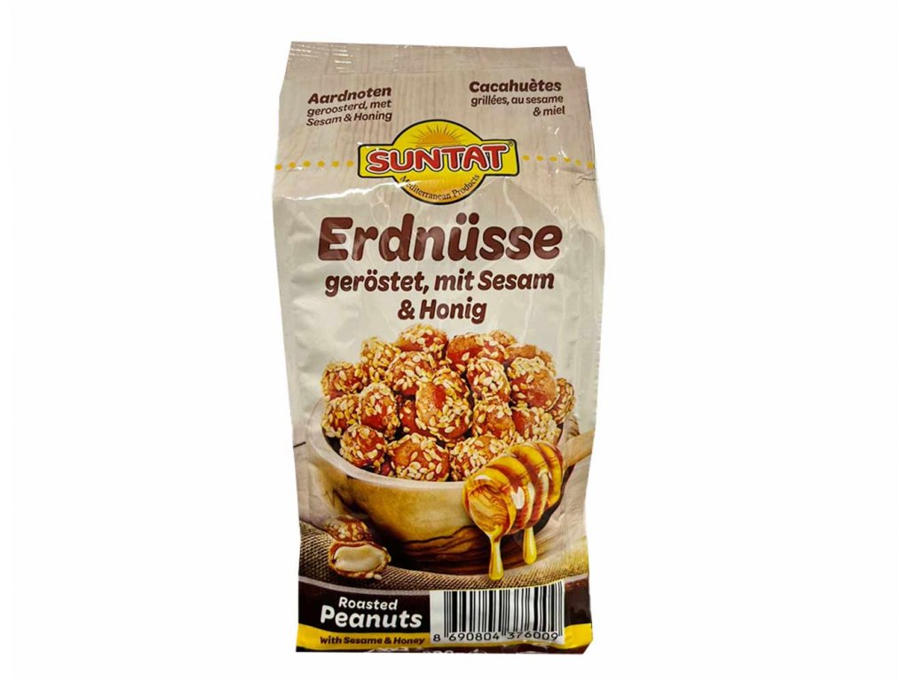 Ingredient: Peanut kernels (46%), sesame (23%), sugar, wheat flour, flavor: vanillin, honey (3%), raising agent E336, color E155, glazing agent: E414