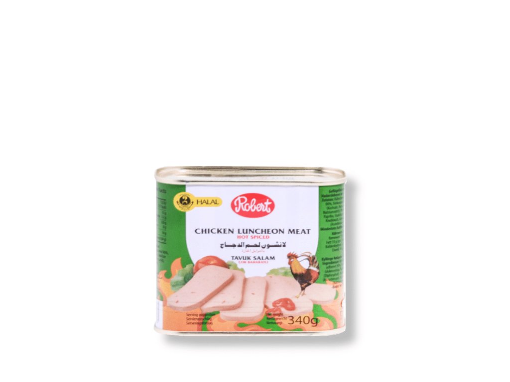 Složení: kuřecí maso mechanicky separované 90%, voda, sůl, pepř, glukózový sirup, paprika, stabilizátor (difosfát), česnek, antioxidant (kyselina askorbová), konzervační látka (dusitan sodný).